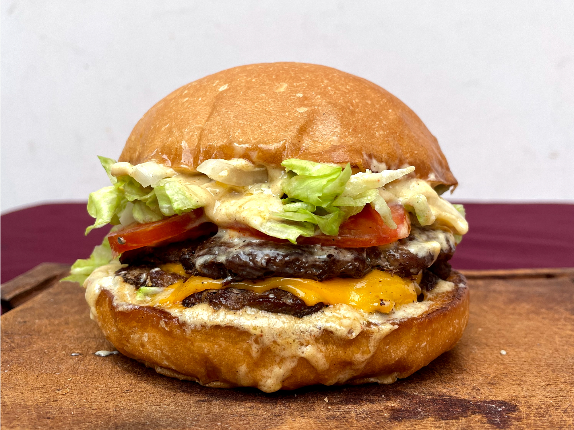 Pan de papa, carne, queso cheddar, tomate, lechuga, cebolla cruda y salsa Gran Tasty. (Recomendamos agregarle Bacon)